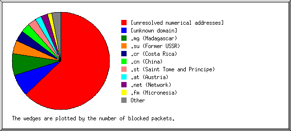 (Go To: Top | General Summary | Blocked Packet Report | Packet Source Host Report | Organization Report | Domain Report | Quarter-Hour Report | Hourly Summary | Packet Size Report | Interface Report | Source Port Report)